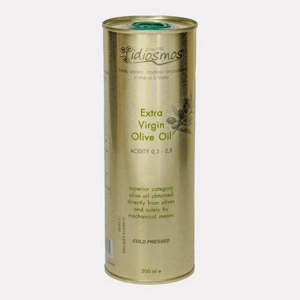 Oferowana przez nas oliwa pochodzi z rodzinnej tłoczni oliwy Idiosmos, która od ponad stu lat wytłacza oliwę z drzew oliwnych uprawianych w rejonie Kolimvari, na Krecie. Dzięki zastosowaniu nowoczesnych maszyn, cały proces, od zbioru oliwek, aż do wytłoczenia oliwy trwa mniej niż 24 godziny, co gwarantuje najlepszą jakość i smak. Do wytłoczenia oliwy jest używana wyłącznie woda nie przekraczająca temperatury 25 stopni, dzięki czemu ilość otrzymanej oliwy jest mniejsza, natomiast zostaje zachowana pełnia smaku i jej właściwości. Kwasowość oliwy nie przekracza 0,8 procenta, przez co oliwa jest bogata w polifenole, czyli antyoksydanty, chroniące przed bakteriami i wirusami. Codzienne spożywanie oliwy chroni również przed wieloma chorobami, między innym rakiem prostaty, rakiem piersi, chorobami układu pokarmowego, Alzhaimerem, poprawia również kondycje skóry i włosów