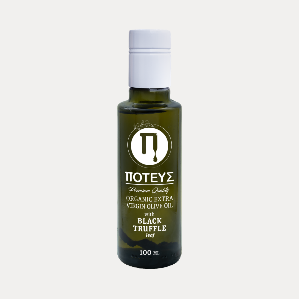 Oliwa Truflowa z rodzinnej tłoczni oliwy POTEUS to niezwykłe połączenie najwyższej jakości organicznej oliwy extra virgin z wczesnego zbioru, z naturalnym olejkiem truflowym i z płatkami trufli. Prosty skład, bez konserwantów i innych dodatków to gwarancja najwyższej jakości i najlepszego smaku i aromatu. Jednocześnie użyta oliwa extra virgin jako baza nie dominuje smaku trufli, a goryczka i lekko pikantny smak typowy dla oliw z wczesnego zbioru sprawia, że aromaty truflowe są jeszcze lepiej wyczuwalne.
