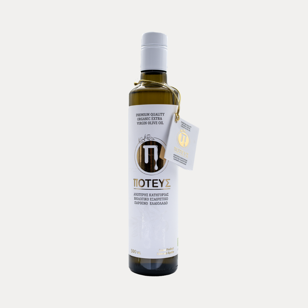 Z organicznych gajów oliwnych, gdzie wspólnie rosną 4 odmiany drzew oliwnych- Petrolia z Serres, Koroneiki, Halkidiki i Megara powstaje najwyższej jakości oliwa extra virgin. Oliwki z tych 4 odmian zbierane są w jednym momencie, kiedy są jeszcze zielone i również tłoczone są jednocześnie, dzięki czemu smaki i aromaty łączą się i mieszają już od samego początku, tworząc harmonijną całość. W rezultacie otrzymywana jest oliwa ze złożonym, wielowarstwowym smakiem, intensywnym, owocowym aromatem, charakterystycznym pikantnym odczuciem i długim, finiszem, który pokazuje jej naturę i autentyczne pochodzenie. Taki smak i aromaty są niemożliwe do osiągnięcia w przypadku mieszanin różnych oliw.