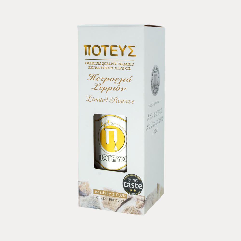 Odmiana oliwek Petrolia z Serres to rzadka odmiana oliwek, która występuję tylko na żyznych ziemiach w okolicach Serres w Macedonii, w Grecji. Może być wykorzystywana zarówno do tłoczenia wysokiej jakości oliwy extra virgin jak i do produkcji oliwek stołowych. Jako jedyni oliwę z odmiany Petrolia tłoczy rodzina Kostis, będąca właścicielem rodzinnej tłoczni oliwy POTEUS. Oliwa jest tłoczona z oliwek z wczesnego zbioru, dzięki czemu jest bogata w polifenole, działające bardzo korzystnie dla naszego zdrowia.