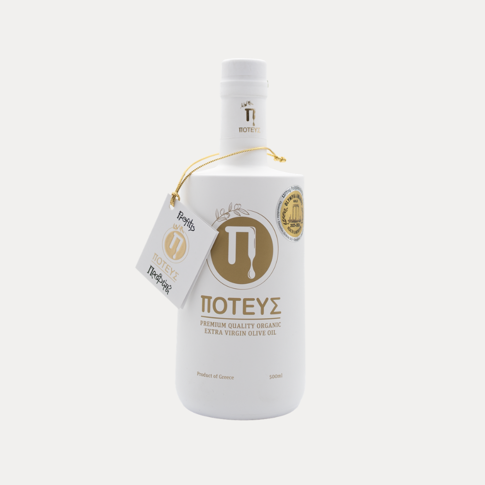 Organiczna, wysokopolifenolowa oliwa extra virgin PROFITIS, to pierwszy rodzaj oliwy stworzony przez rodzinną tłocznię oliwy Poteus, należącą do rodziny Kostis. Otrzymywana jest z aż 7 odmian oliwek: Lefkolia z Serres, Petrolia z Serres, Halkidiki, Koroneiki, Amfissa, Kalamata i Megara, dzięki czemu ta harmonijna mieszanka smaków i aromatów doskonale oddaje autentyczny charakter regionu. Nazwa oliwy pochodzi od greckiego słowa Profitis (gr. προφήτης) i jest hołdem dla pierwszego, znajdującego się w miejscowości Pethelinos, gaju oliwnego należącego do rodziny, na którego terenie stoi kaplica proroka Eliasza.